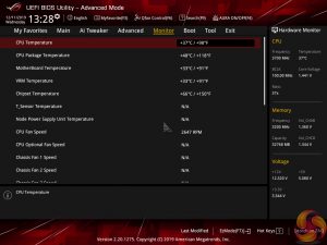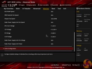 ASUS gives a wealth of information relating to voltages, temperatures, and fan speeds, as displayed in the Monitor UEFI page. Warnings relating to low fan speed can also be set to warn a user of a failed fan, for example.