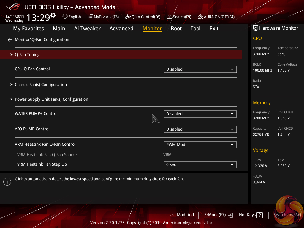 There is, however, a Fan Off setting for the non-CPU fans that allows them to power down when the relevant temperature conditions are met. While this is a useful feature in theory, I have previously seen fans succumbing to motor twitch in this mode, and the jump from 0% speed to 60% is generally audible.
