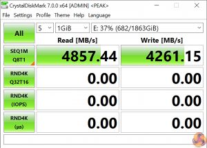 We test M.2 PCIe performance using an Aorus PCIe Gen 4 2TB SSD. This SSD uses a Phison-based PCIe Gen 4 controller.