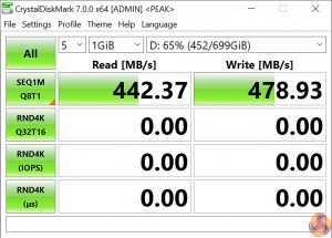 For SATA 6Gbps testing we use a Crucial MX300 750GB SSD.