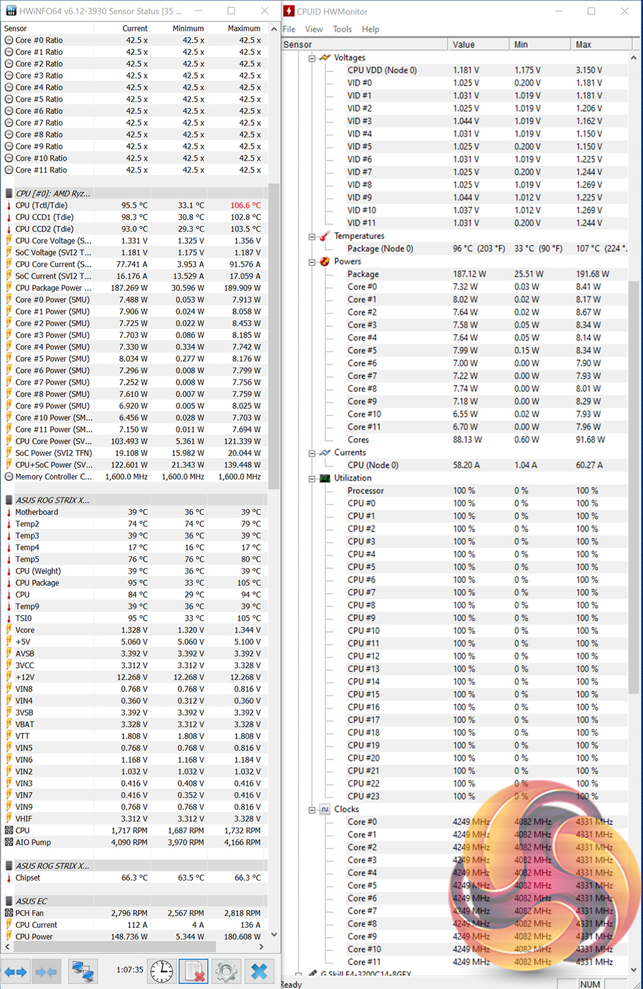 ASUS provides a solid set of temperature data points but it is disappointing to see the lack of a VRM temperature sensor. The power data according to HWiNFO and HWMonitor looks to be accurate.