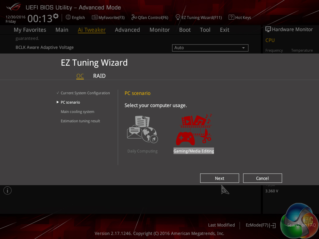 We selected the usage option as gaming and the cooling option as watercooling in order to unlock ASUS' highest speed increases.
