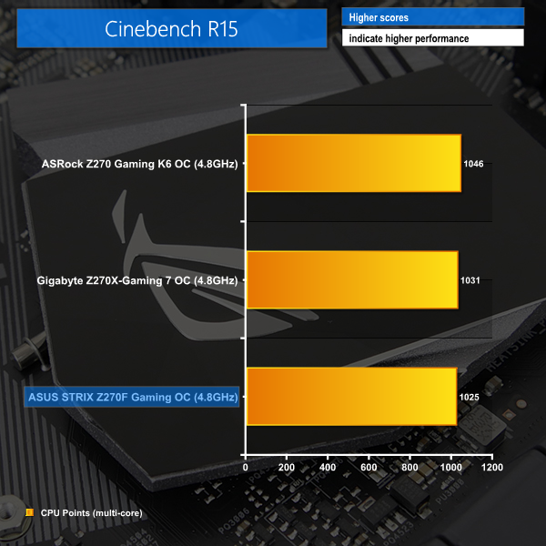 As a performance comparison, we have included the results from two other Z270 motherboards. The maximum overclocked configuration achieved with each board was a 4800MHz (48 x 100MHz) processor frequency whilst using 3200MHz CL14 memory.
