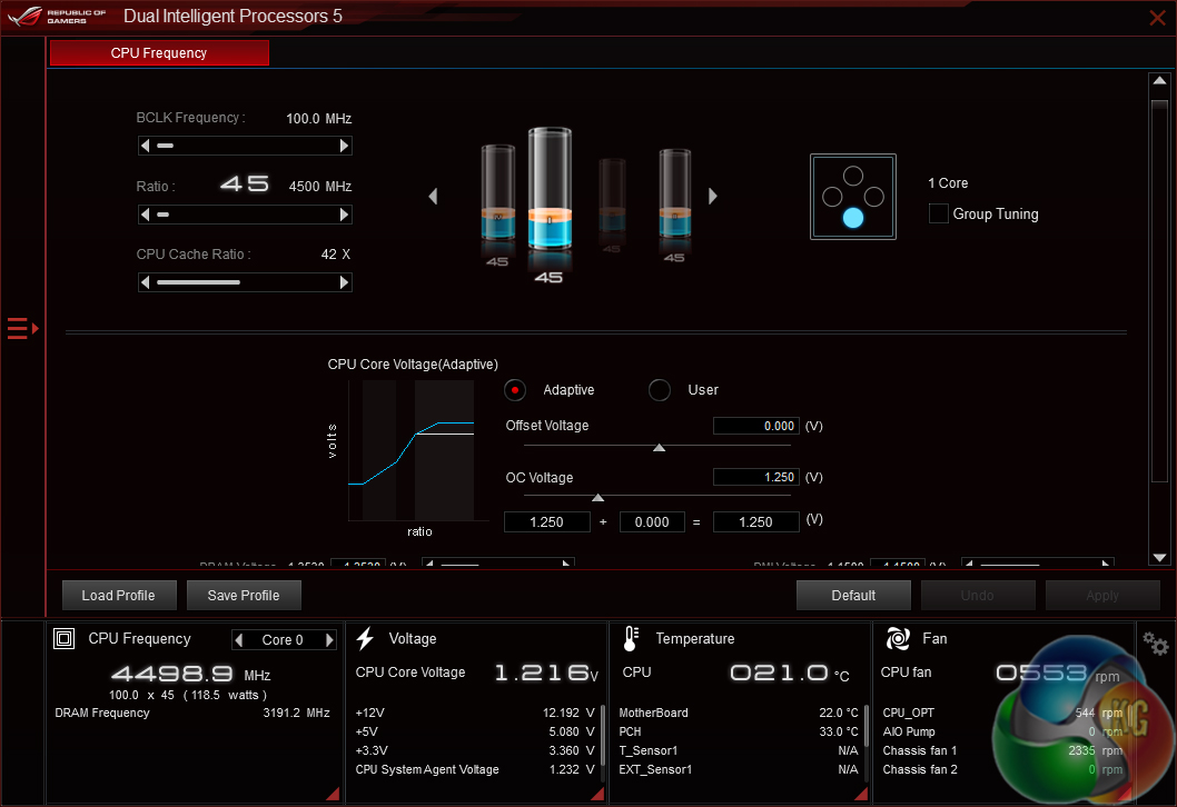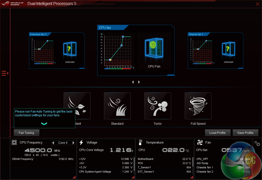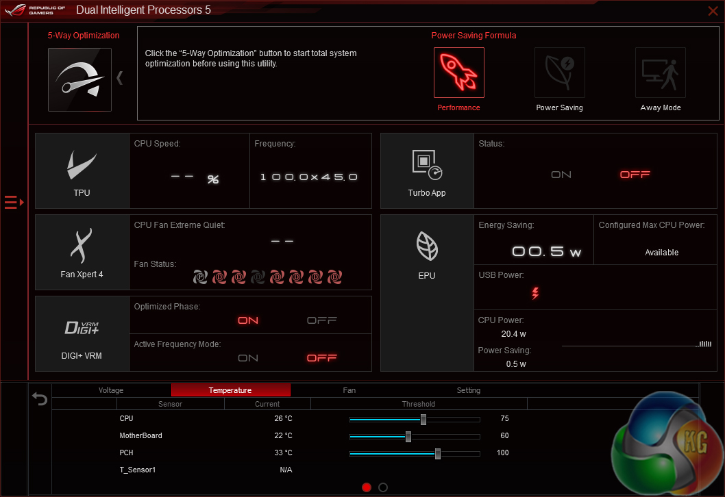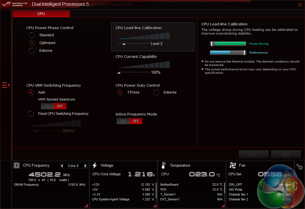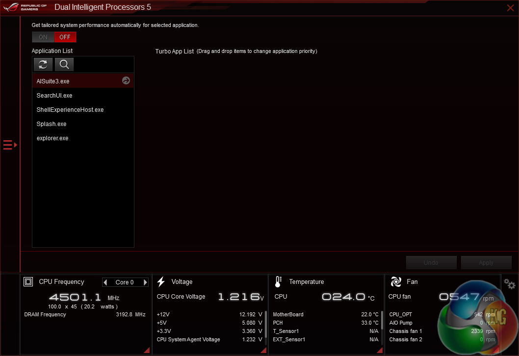 The sheer volume and quality of OS-based software that ASUS makes available is impressive. AI Suite 3 is home to the important system-related settings and does a good job at categorising several tools under one single umbrella suite rather than multiple individual shortcuts. The Dual Intelligent Processors 5 tool's ability to set specific turbo modes for chosen apps is a good feature that may prove useful to some people.