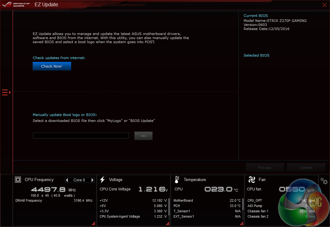 AI Suite 3 is the go-to point for any settings or information relating to system operations. Want to check temperatures and voltages or adjust multipliers for the CPU and speeds of fans? AI Suite 3. Want to speed up certain programs or reduce the amount of RAM-hogging operations on your system? AI Suite 3. Want to check for a BIOS update? AI Suite 3.