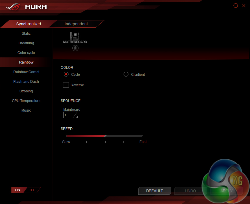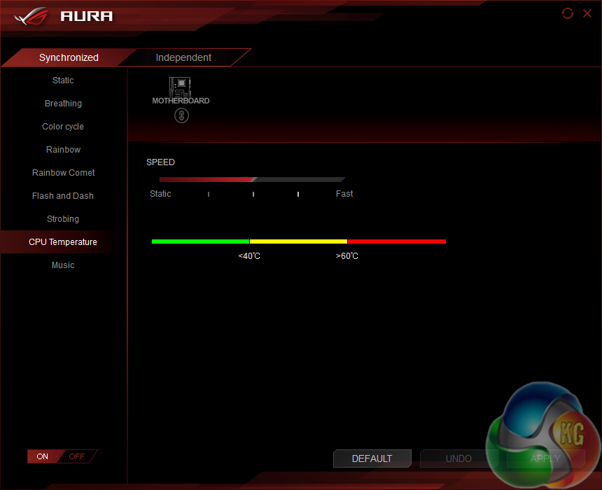 AURA is another excellent tool that provides a good degree of RGB customisation in terms of colour and operating modes. The tool is better than MSI's and ASRock's offerings but isn't quite as good as Gigabyte's due to ASUS providing only a CPU temperature ‘intelligent' lighting mode.