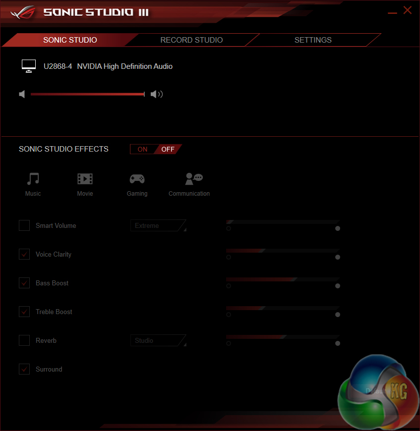 Sonic Studio III allows a user to tune the audio system to their own personal preference. Different profiles can be set for different applications and there are also several pre-determined effects saved in the software.