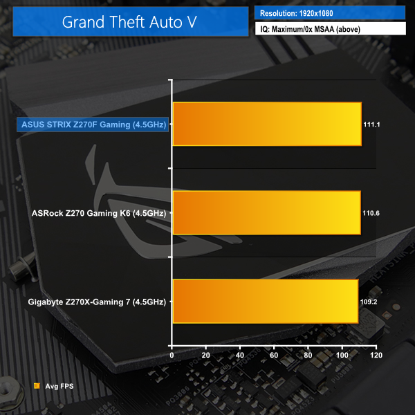 Grand Theft Auto V remains an immensely popular game for PC gamers and as such retains its place in our test suite. The well-designed game engine is capable of providing heavy stress to several system components, including the GPU, CPU, and Memory, and can highlight performance differences between motherboards. We run the built-in benchmark using a 1080p resolution and generally Maximum quality settings (including Advanced Graphics).