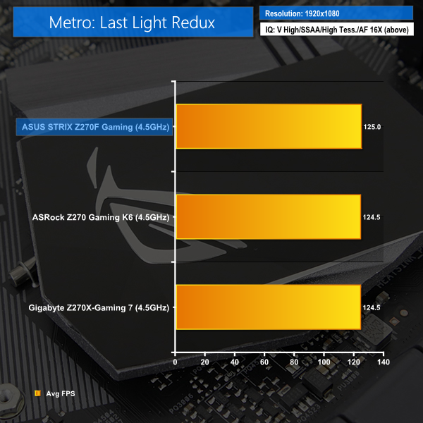 Despite its age, Metro: Last Light Redux remains a punishing title for modern computer hardware. We use the game's built-in benchmark with quality set to Very High, SSAA enabled, AF 16X, and High tessellation.