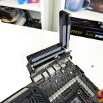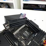 The M.2 heatsinks have also been beefed up slightly for the Hero. The top Gen 4 cooler features a multi-tiered slab of metal that should do a superb job. And the secondary slot’s heatsink branches out to the chipset RGB LED cover, giving it a little extra surface area … as well as a slightly more complicated installation procedure. No tool-less installation method like with the Z590-E Gaming WiFi is disappointing. The Hero does, however, offer dual-sided M.2 SSD cooling instead, so this is a clear functionality upgrade.