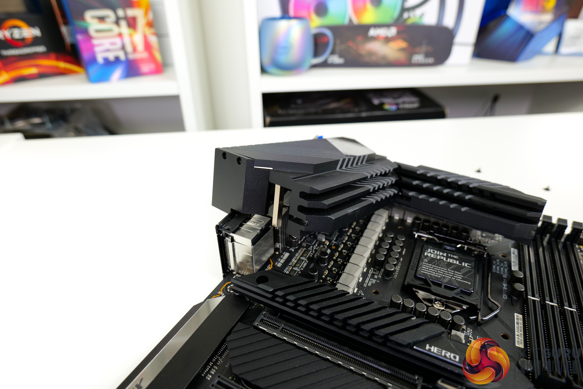 You still get the same eight 4-pin fan headers, but greater space constraints around the CPU socket means that more header are distributed around the board. This is actually a slight downgrade for the Hero in my opinion. ASUS does, however, upgrade an additional header to 3A/36W output so now you get two of those. Greater focus is also put on liquid cooling, with the inclusion of Water IN, OUT, and Flow headers.