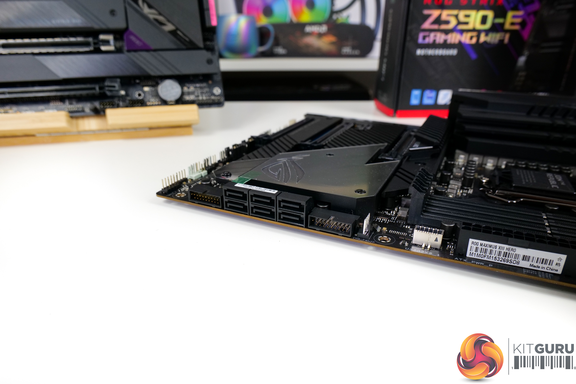 Sitting a rung above the ROG STRIX Z590-E Gaming WiFi in ASUS’ product ladder, the Maximus XIII Hero is very similar to its cheaper brother in many respects but adds some more enthusiast and overclocking geared features. Notably, the power connectors are upgraded to dual 8-pin for higher total throughput capability.