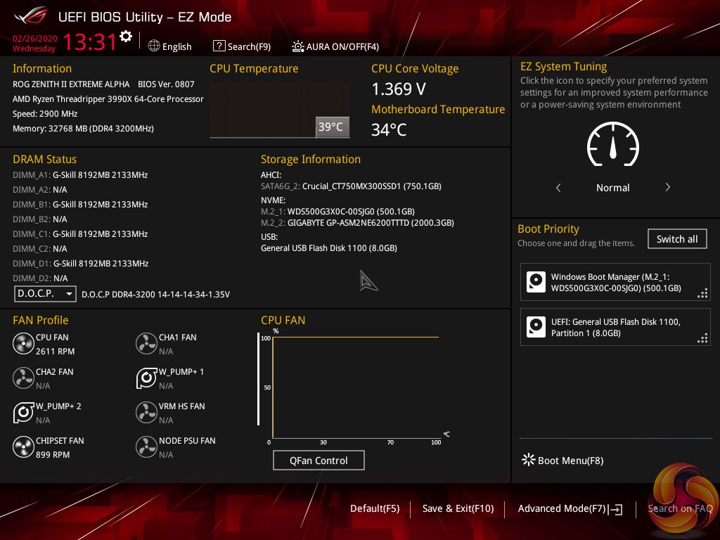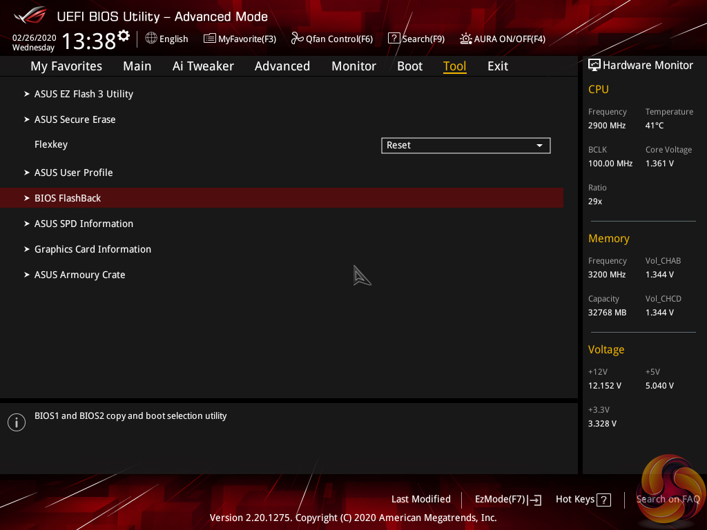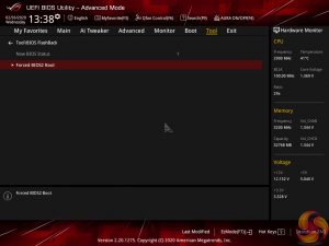 ASUS' ROG-themed UEFI software is the same implementation as what we saw on the ROG STRIX TRX40-E Gaming. As such, our analysis follows a similar tone and we have reused many of the UEFI screenshots from the previous review.