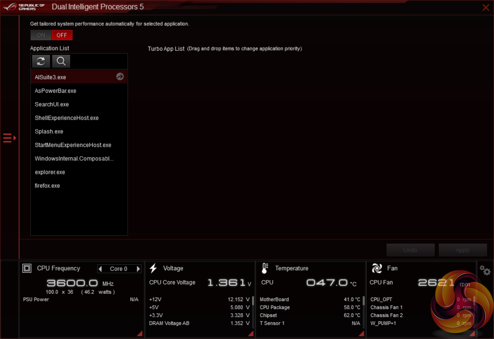AI Suite 3 is the go-to point for any settings or information relating to system operations. Want to check temperatures and voltages or adjust multipliers for the CPU and speeds of fans? AI Suite 3. Want to speed up certain programs or reduce the amount of RAM-hogging operations on your system? AI Suite 3. Want to check for a BIOS update? AI Suite 3.