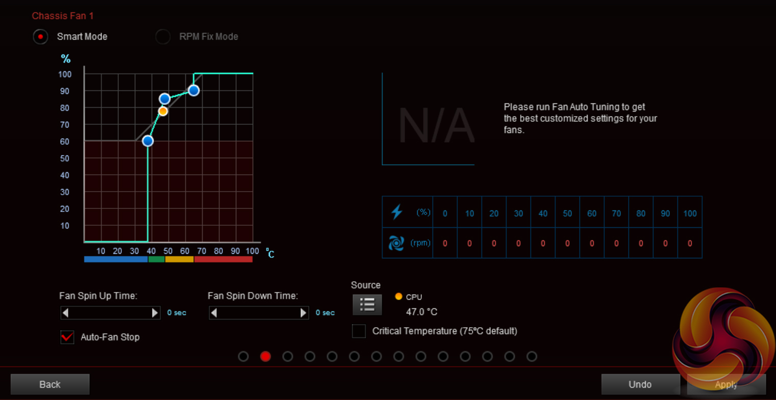 The fan control abilities within AI Suite 3 are similar to those found within the UEFI. One of the key differences here is the ability to tie fan speed curves to positions within one's system build, which is especially useful if you have a large number of fans.