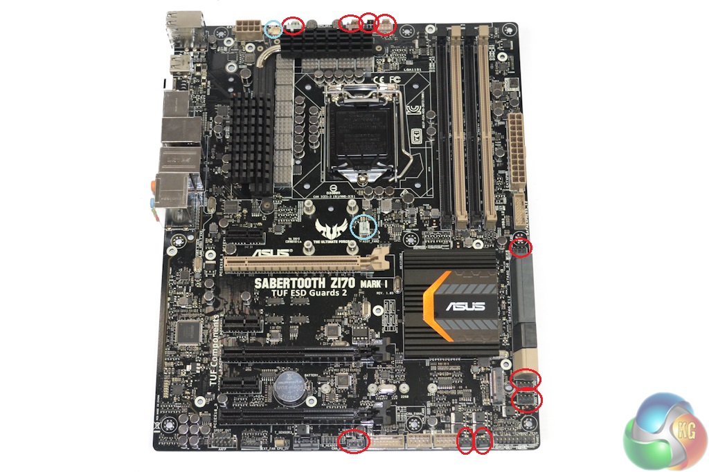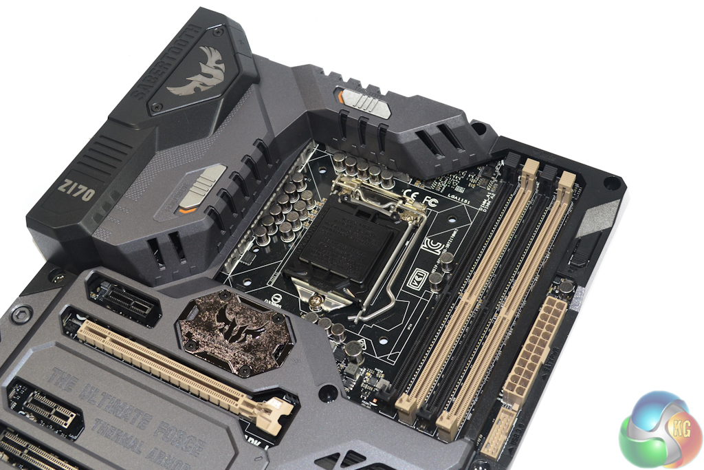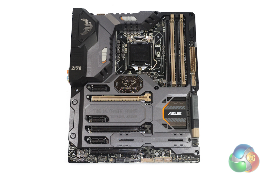 The Asus Sabertooth Z170 Mark 1 motherboard conforms to the standard ATX form factor. A largely black and grey colour scheme that is accompanied by brown and beige highlights is difficult to analyse.