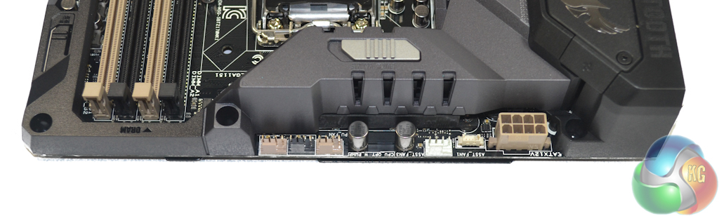As well as the 8-pin CPU power delivery connector, a total of five fan headers are found along the board's upper edge. Two 4-pin headers handle CPU fans, one next to that pair is dedicated for AIO watercooling pump duties (where 100% speed operation is important), and the two remaining handle ‘Assistant' fan duties.