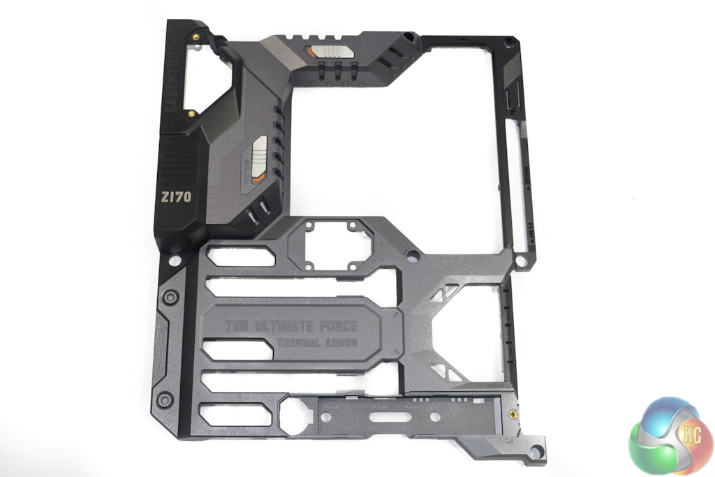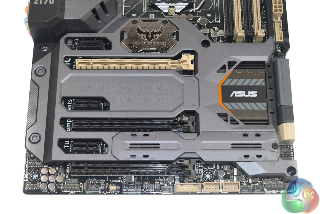 The job of Asus' front-side Thermal Armor plastic cover is to segregate primary areas of heating. The motherboard's PCB is completely segregated from a hot graphics card thus alleviating a significant heat affected zone in close proximity to the board's graphics-housing PCIe slot.