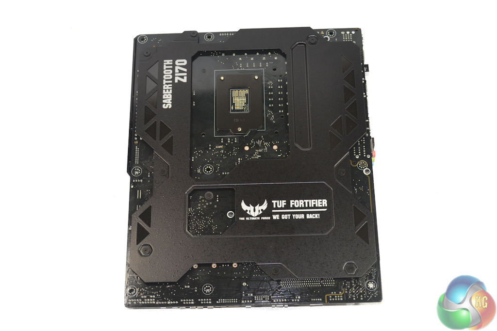 Asus' metal – TUF Fortifier – backplate is used to enhance motherboard rigidity and it does so very well. While its function may not be so apparent at first thought, having a heavy air cooler hanging from the CPU socket creates a large amount of bending stress on the motherboard's PCB. The metal plate helps to increase the motherboard's stiffness, thus reducing the strain caused by a heavy CPU cooler.