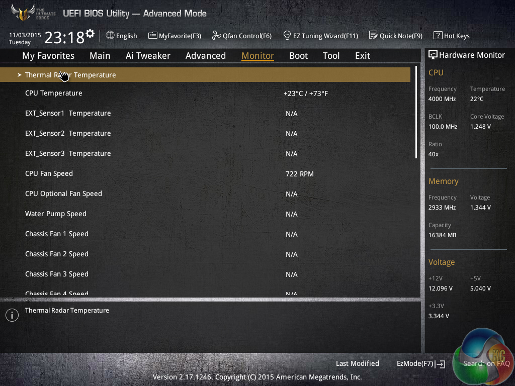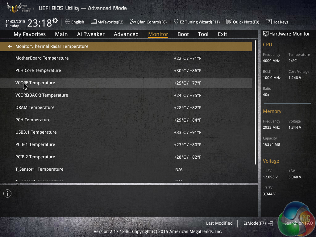 An array of voltages, temperatures, and fan speeds can be monitored in the UEFI.