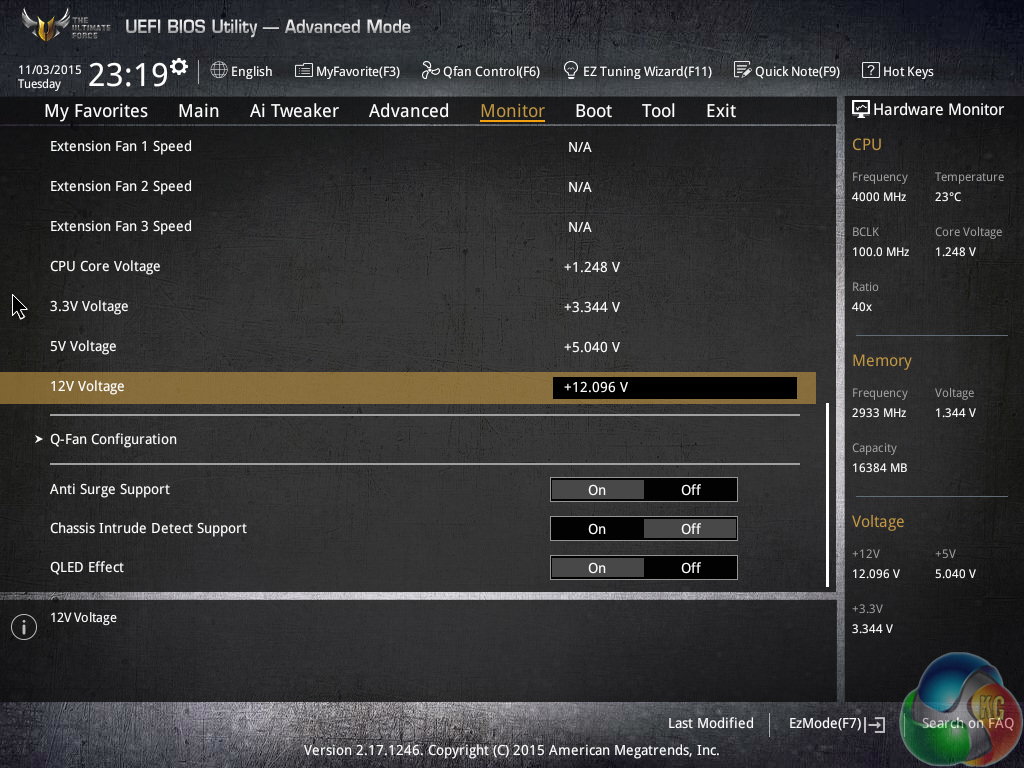 Asus gives the UEFI its usual level of flexibility regarding fan speed tweaking. The Q-Fan Tuning utility gives users a graphical display from which they can adjust speed against temperature settings and there's also an automated configuration tool.