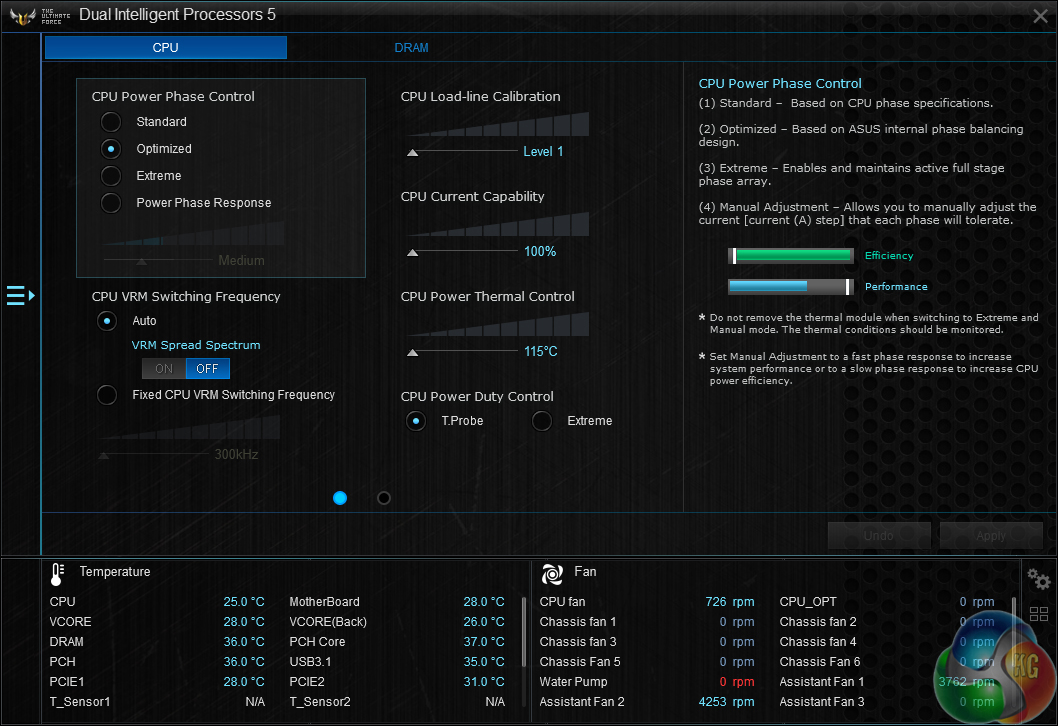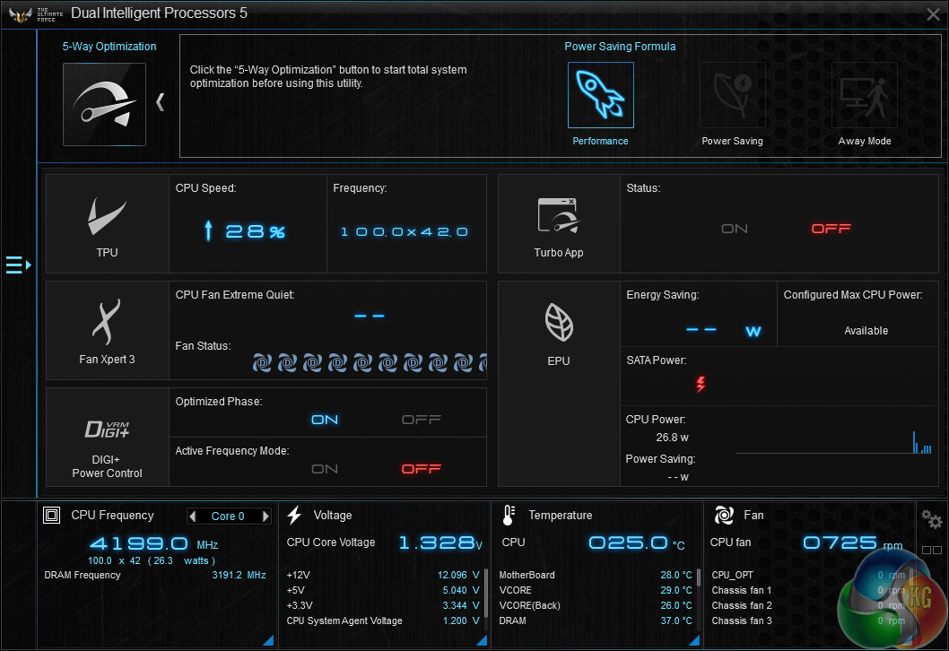 Asus’ AI Suite 3 software is very good. A strong array of voltage, frequency, and power settings can be adjusted via the software.