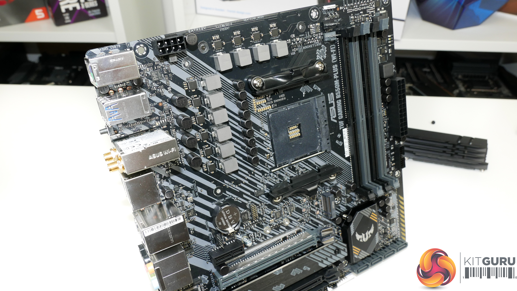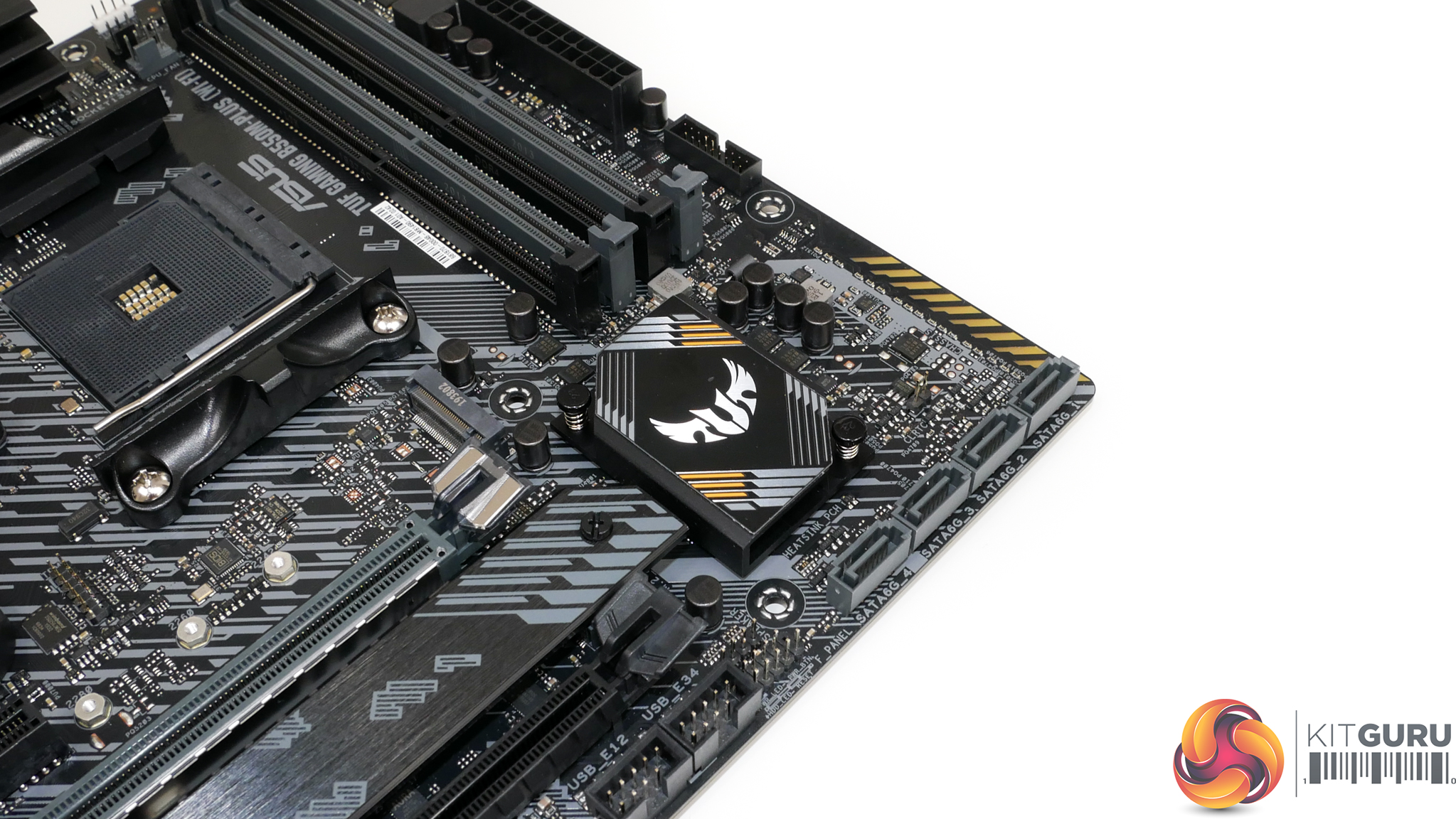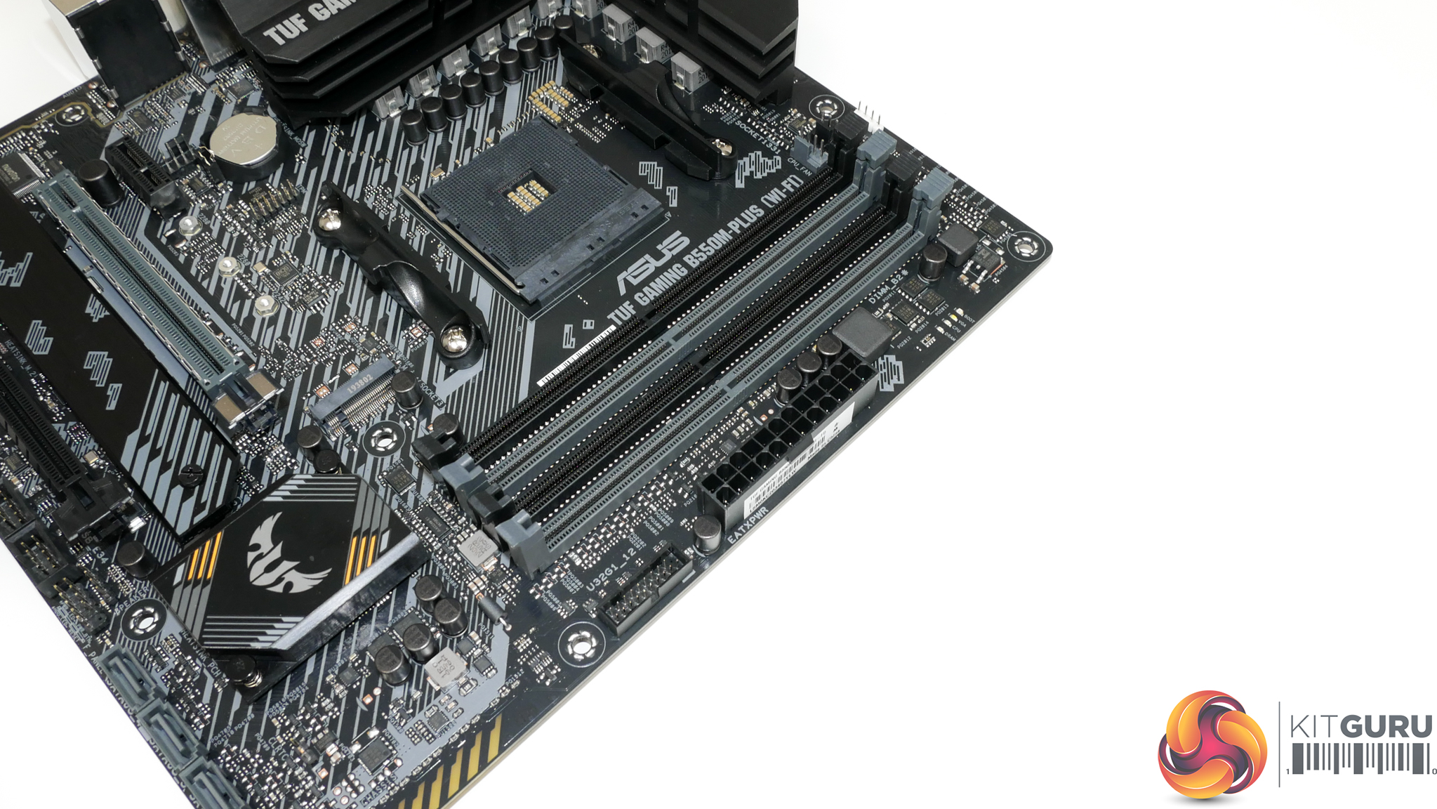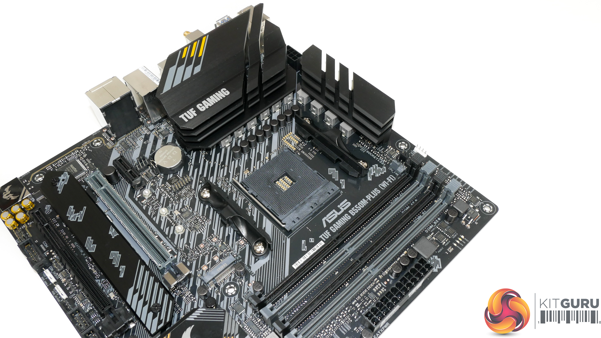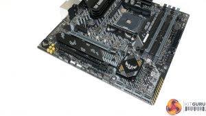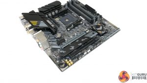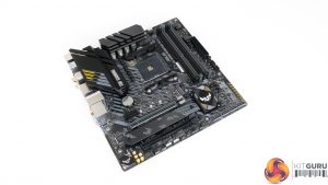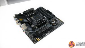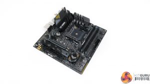 The ASUS TUF Gaming B550M-Plus (Wi-Fi) features a primarily black and grey colour scheme with the usual hints of yellow we see from the TUF range.