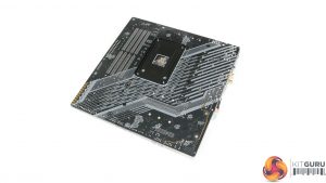 Not too tall and with minimal interference headaches, the VRM heatsinks look fit for purpose when combined with the solid power delivery hardware. The top heatsink does line up near the top edge of the motherboard though, so it is worth being careful with roof chassis fan or AIO cooler interference.