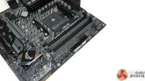 ASUS’ slot layout is not ideal, but the decisions are perhaps a necessary evil. A 2.5- or 3-slot graphics card will render the bottom full-length PCIe slot useless as it cannot be accessed. This leaves only an x1 connection for expansion, but we would argue that an x1 slot is less useful than the full-length x4.