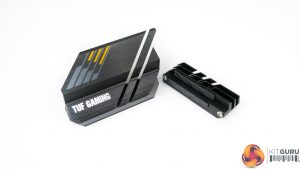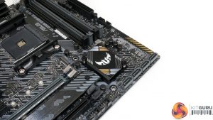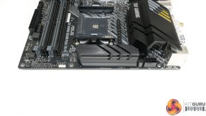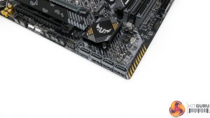It would have been better to have both slots cooled, but if only one heatsink can be included, ASUS made the correct decision in our opinion. The caveat is that an SSD installed in the top slot will use its own heatsink and this may cause a clash with the system aesthetics. That’s less of an issue for Corsair’s attractive MP600 than it is for the Aorus Gen 4 SSD.