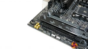 A small block of metal is used as the passive chipset heatsink. As B550 does not put out considerable heat, this will be fine for cooling the chipset adequately.