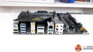 WiFi comes from an Intel 802.11AX controller and also provides Bluetooth connectivity. 2.5GbE is good to see and is handled by a Realtek RTL8125B chipset. ASUS also deploys a smart pair of video output ports; Displayport 1.2 and HDMI 2.1 are both good for 4K60 from an integrated GPU.