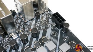 Ten total power stages are used for the CPU and SoC in an 8+2 DrMOS design. The PWM controller is a Digi+ ASP1106G operating in 4+2 phase mode without phase doublers for the CPU VCore power stages. The CPU VRM is a teamed 4-phase design that uses eight stages of current output capacity.
