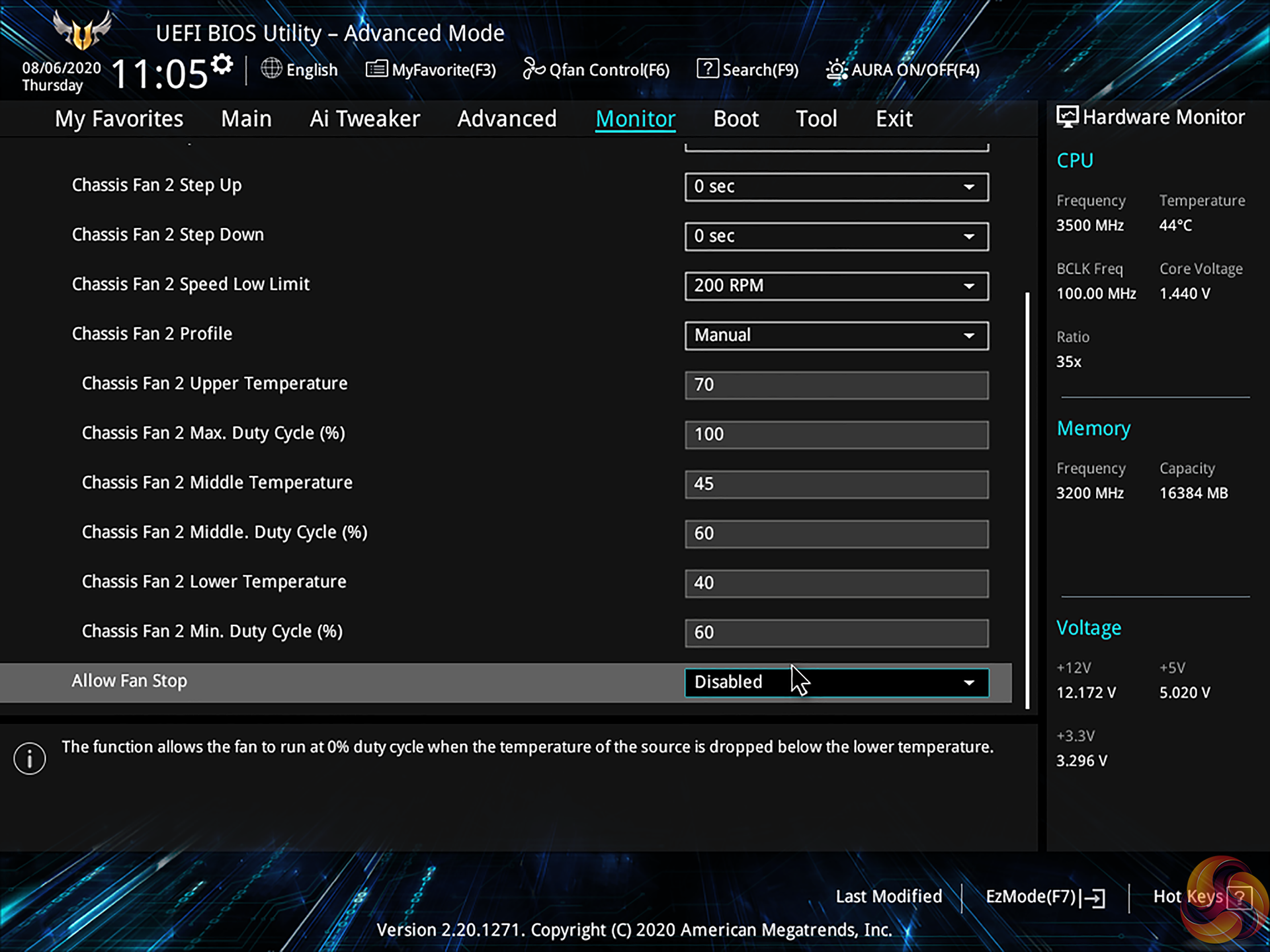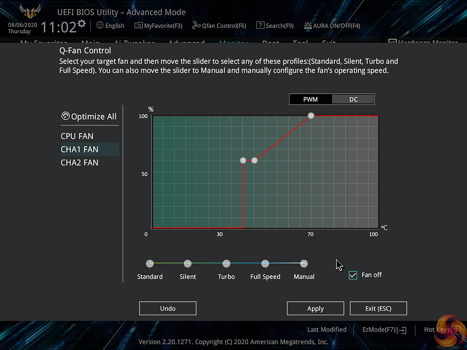 You get curve control via three temperature points, though the minimum fan speed level that can be set is 20%. You can also apply a Fan Off setting when using DC control, thus allowing the fan to spin down, provided the specific model is able to do so correctly.