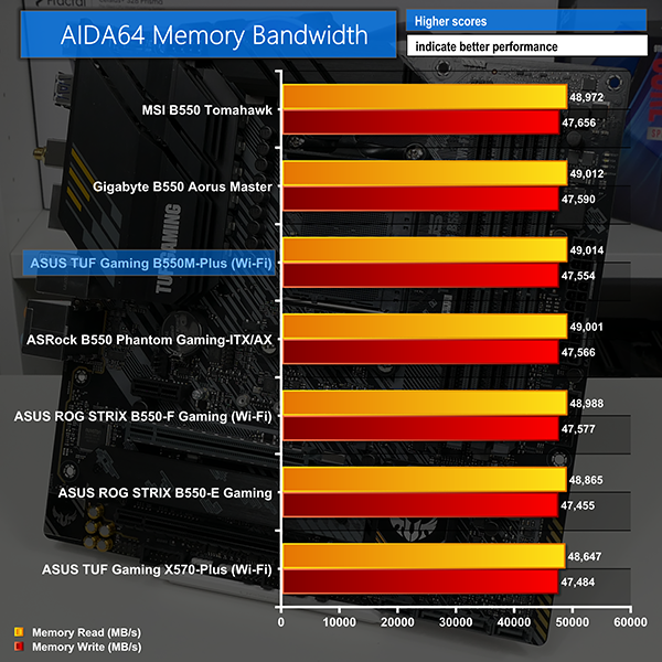 Memory bandwidth numbers are strong, as we have come to expect from ASUS motherboards. Superb memory performance consistency is a clear strength for ASUS.