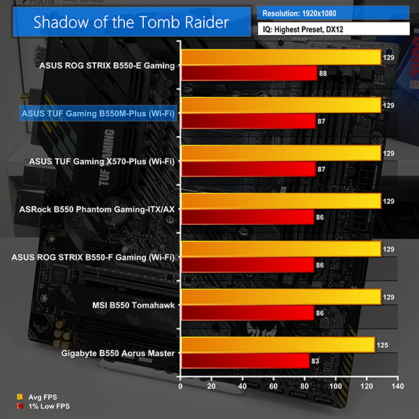 Gaming numbers from the B550M-Plus (Wi-Fi) are very positive with the motherboard consistently nearing the top of our charts.