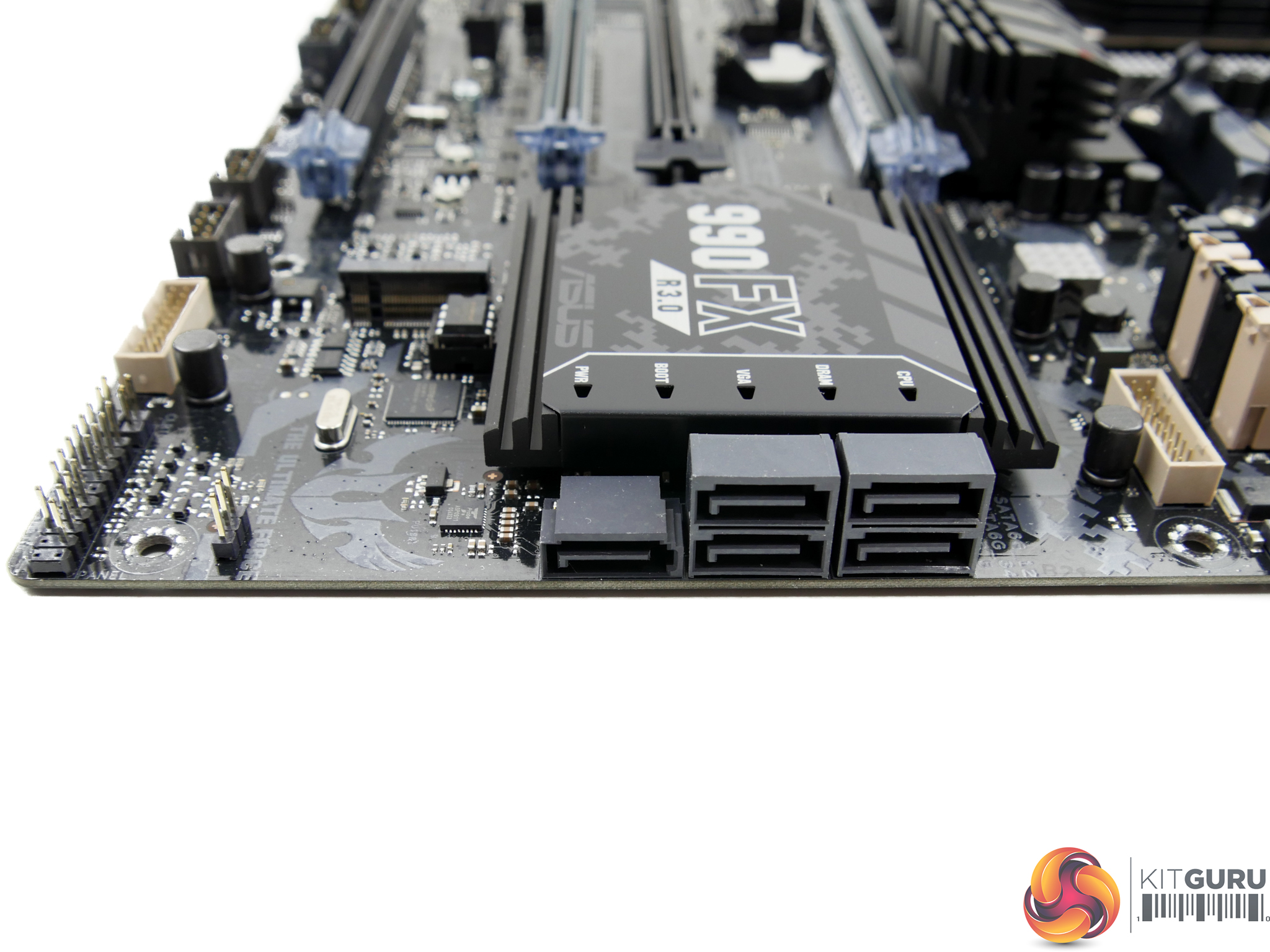 QLED indicators on the southbridge heatsink are a smart move by ASUS. They save a user from searching across the PCB for the relevant boot functionality LED. However, they are likely to be partially blocked by a graphics card.