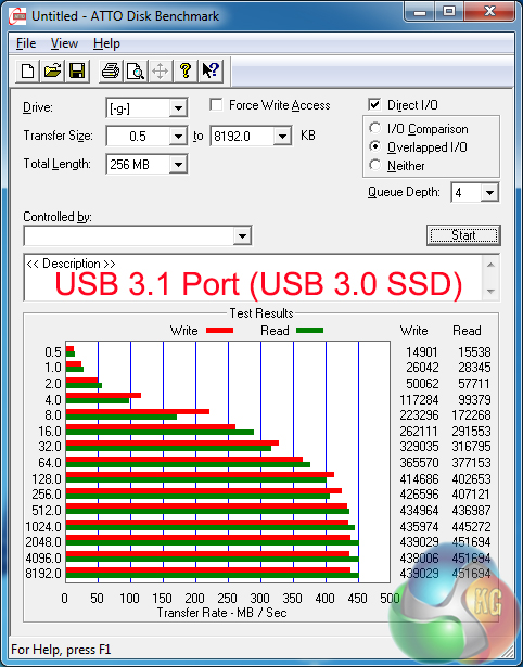 I tested the ASMedia ASM1142-fed USB 3.1 ports with our USB 3.0 adapter and SSD simply as a way of validating their performance with current external drives. They have no problems pushing a USB 3.0-linked SSD to its speed limit, so we would not expect any major issues with USB 3.1 drives.