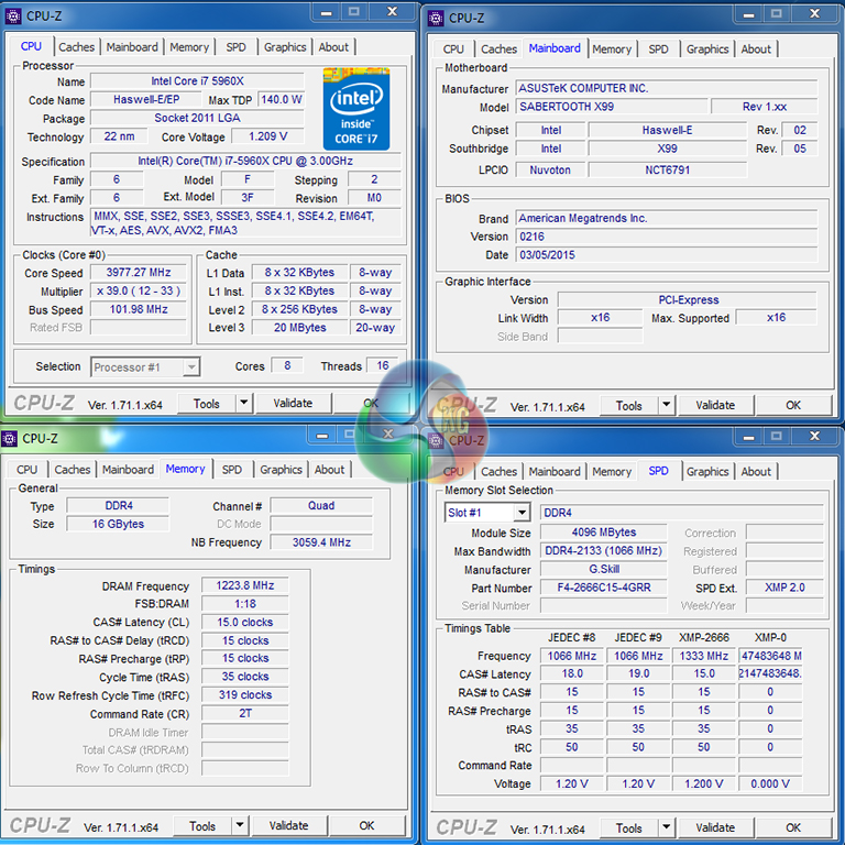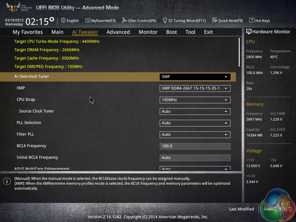 Running the EZ Tuning operation through Asus' UEFI resulted in a CPU frequency of 3978MHz (39x102MHz) for our system, with memory clocked at 2448MHz. Cache frequency also gets a 60MHz bump.