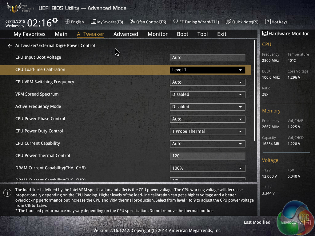 The main overclocking settings are easy to access in Asus' UEFI. However, a few of the settings – namely LLC and CPU Integrated VR Faults Management – are a little more difficult to locate.