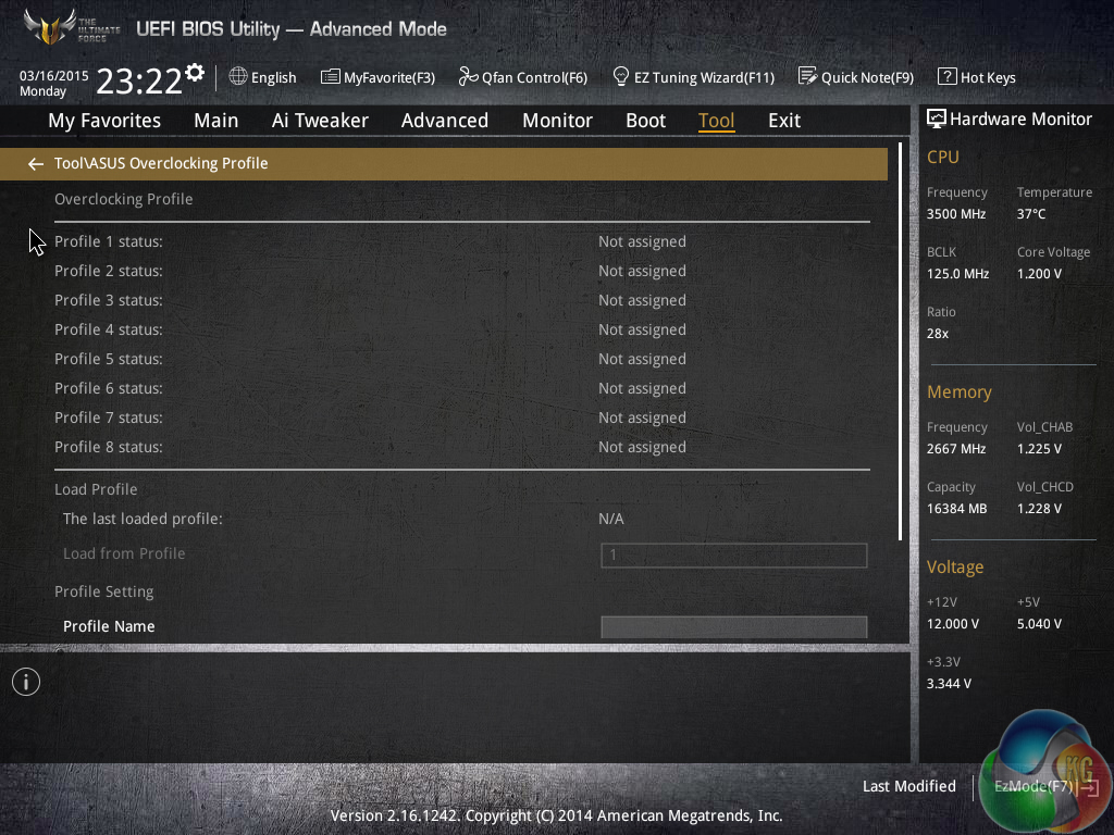 Up to eight distinct configuration profiles can be saved to the motherboard, while additional settings can be transferred via a USB flash drive.