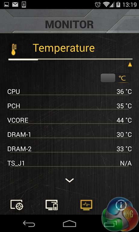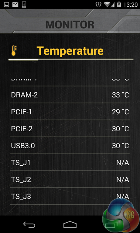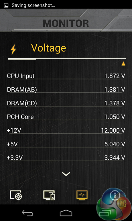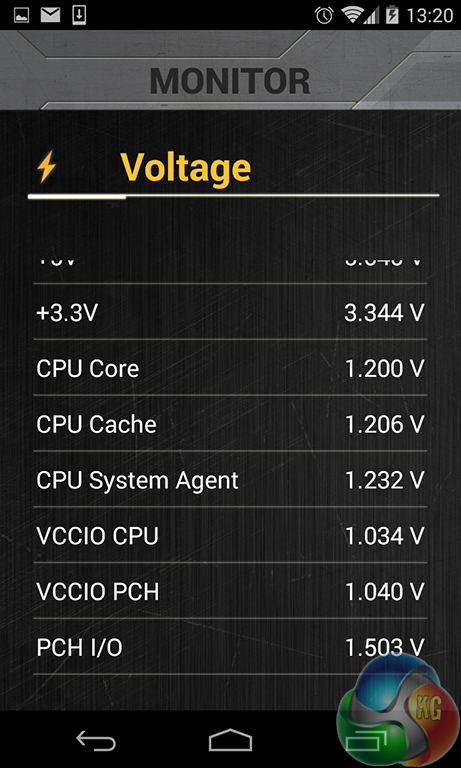 The temperature and voltage level monitoring information was taken straight from information supplied by the TUF ICe and Nuvoton chipsets. Information displayed on the app is consistent with that shown by OS-based software.