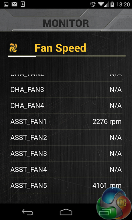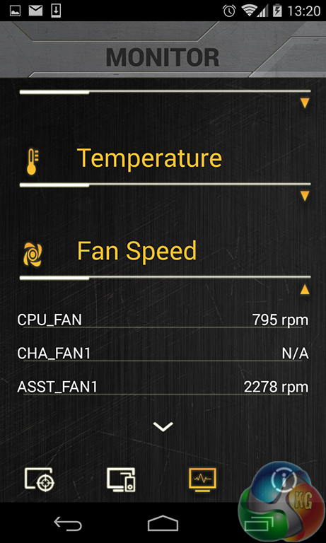 The TUF Detective app worked perfectly on my Nexus 4 phone running Android 4.4.4. A user can control their system, view its information, and make use of monitoring tools through the app.