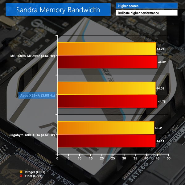 Memory bandwidth of the X99-A is marginally lower than the numbers displayed by MSI's similarly-priced X99S MPower.