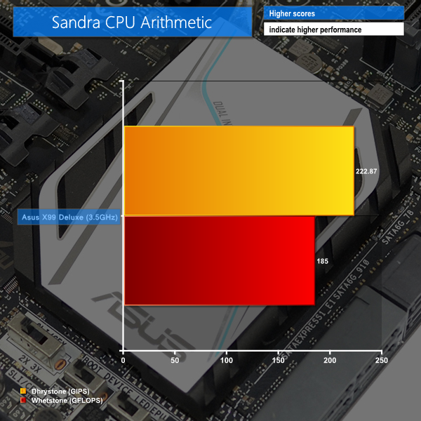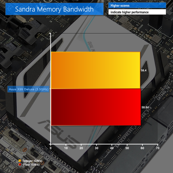 The eagle-eyed amongst you will notice that our test data for Asus' board is identical to that gathered for our 5960X review. We re-ran all of the benchmarks with Asus' latest BIOS and the only result to change was Sandra's Memory Bandwidth test. The increased score is in line with Asus' suggested memory performance improvements.