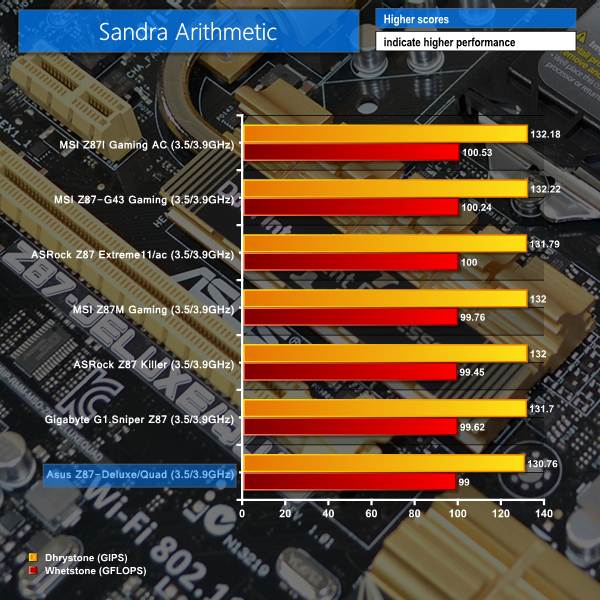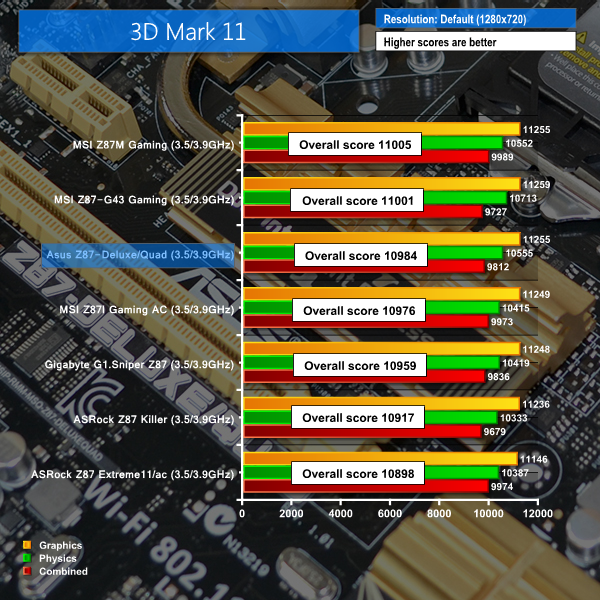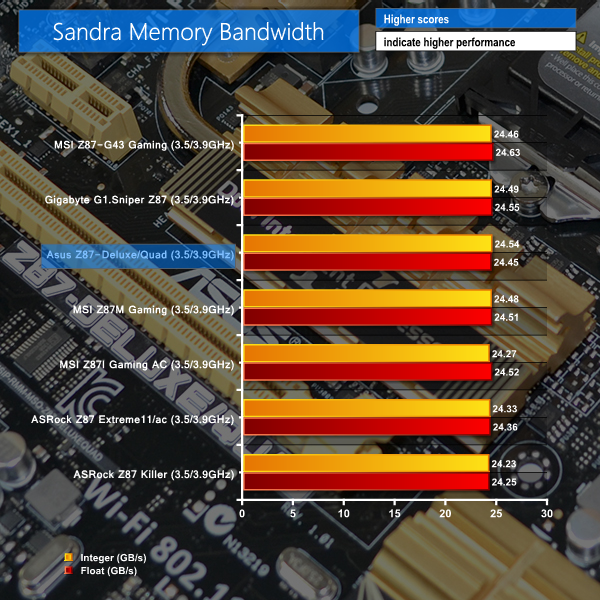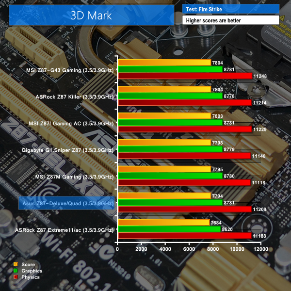 Asus's Z87-Deluxe/Quad motherboard delivers a standard set of results for a Z87 part. Given that such a large proportion of the performance-impacting components are situated on an LGA 1150 chip, it is no surprise that performance differentials between Z87 motherboards are few and far between.