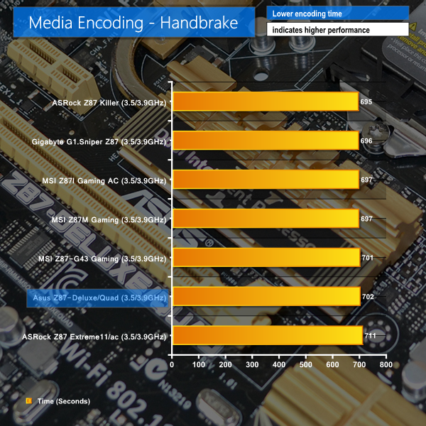 We see more of the same ‘typical' Z87 motherboard performance in our processor-heavy set of benchmarks. Asus's Z87-Deluxe/Quad clearly does not have any glaring performance issues.