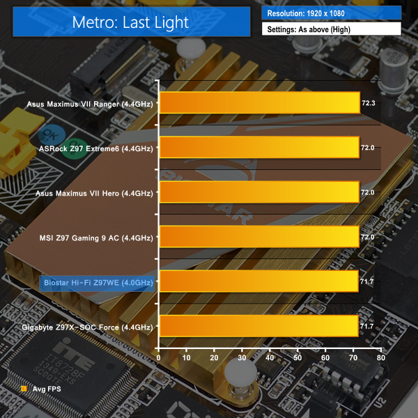We used a 1920 x 1080 resolution and the Metro: Last Light built-in benchmark set to ‘High’ quality to offer an intense challenge for the gaming hardware while also making playable frame rates a possibility.