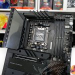 PCIe connectivity is improved to a pair of full-length, steel-reinforced slots. These run at x16/x0 or x8/x8 using CPU-fed Gen 5 lanes. Only the top slot gets the Q-release latch though. There is a bottom PCIe 4.0 x1 slot, too.