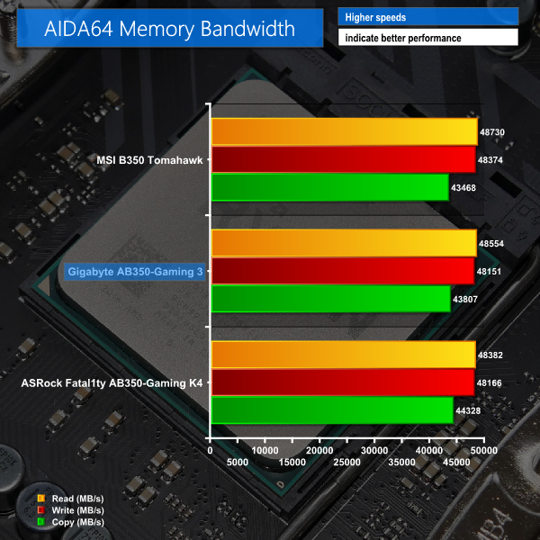 Memory-based performance is also fine with the Gigabyte board, even if its latency numbers are very slightly worse than those of its competitors.